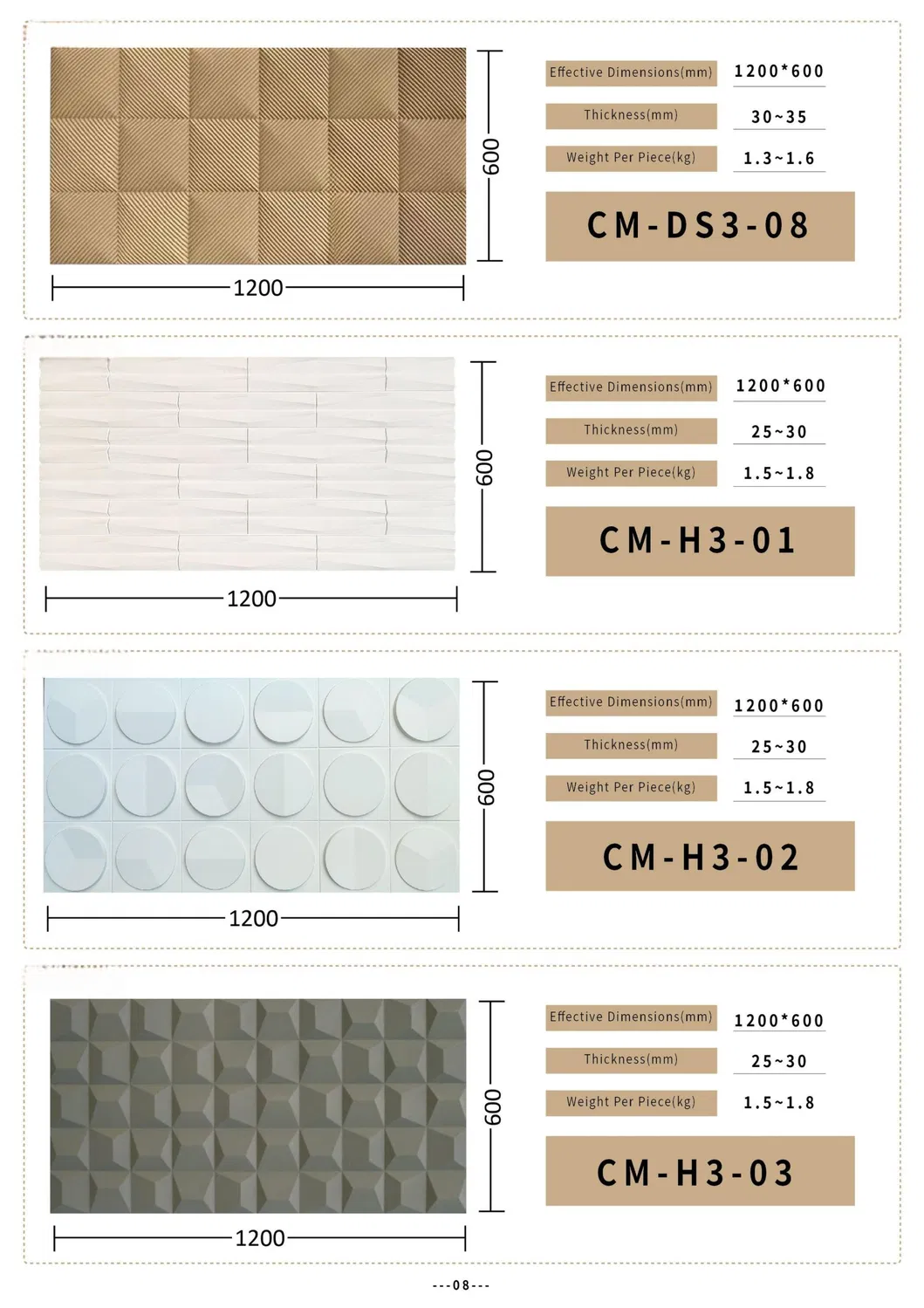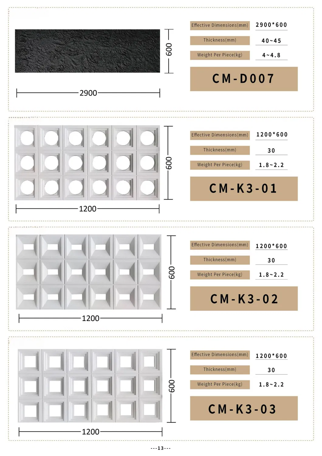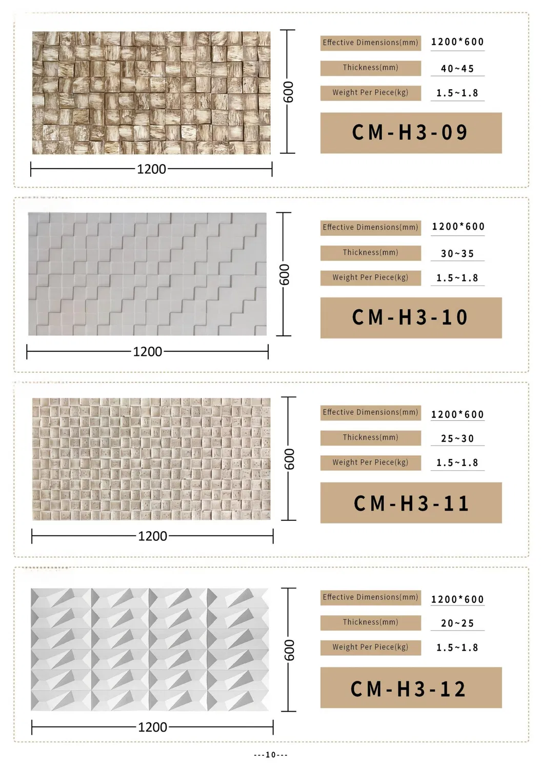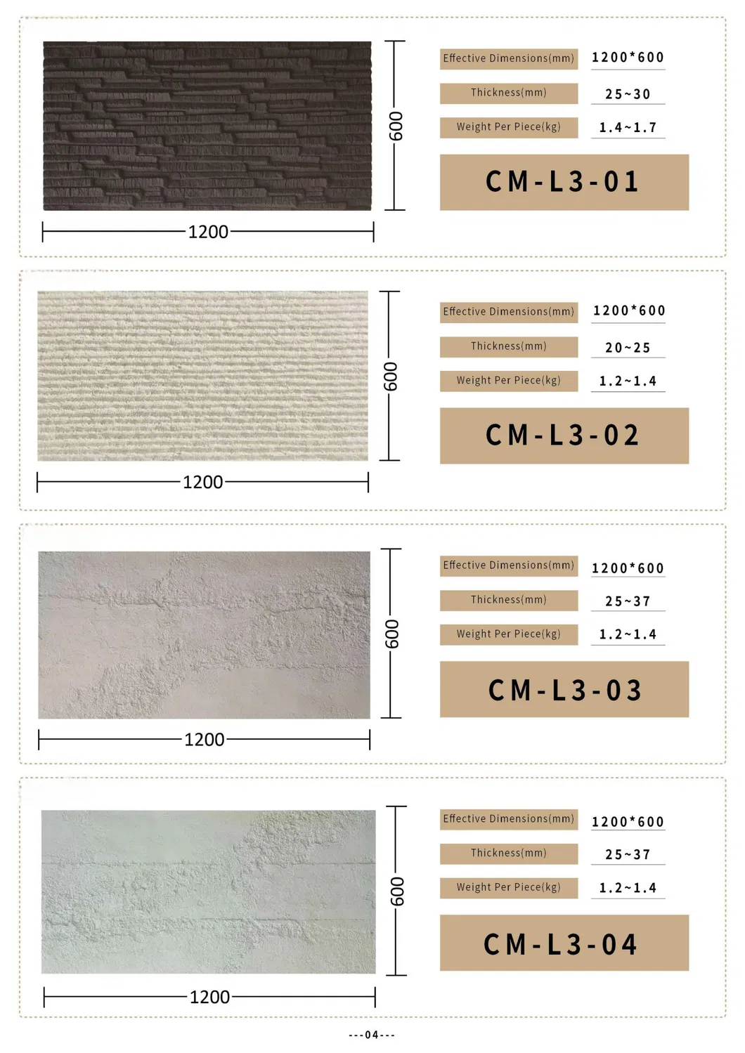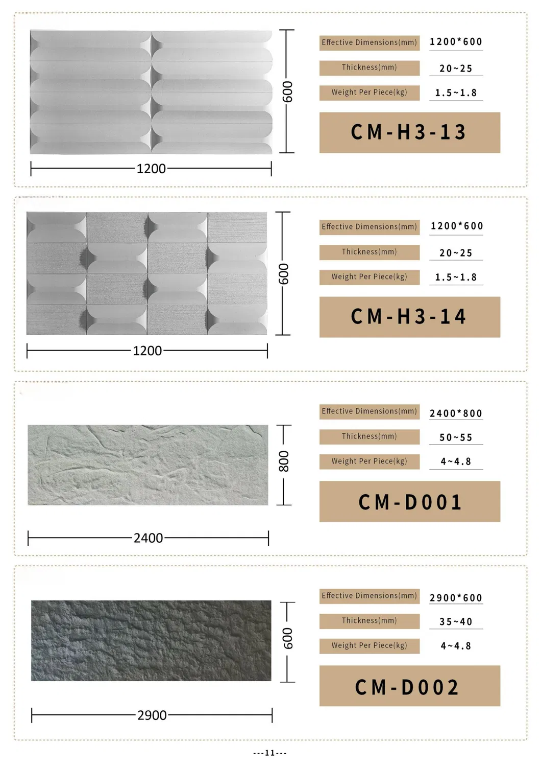 Standard sizes include 1200*600mm and 1200*305mm with thicknesses of 30mm or 60mm. Custom sizes and colors are available upon request to meet specific project needs.